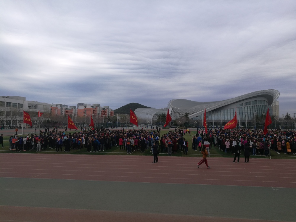 操场集合,冰球官网参加健步行的比旁边的单位人多很多!