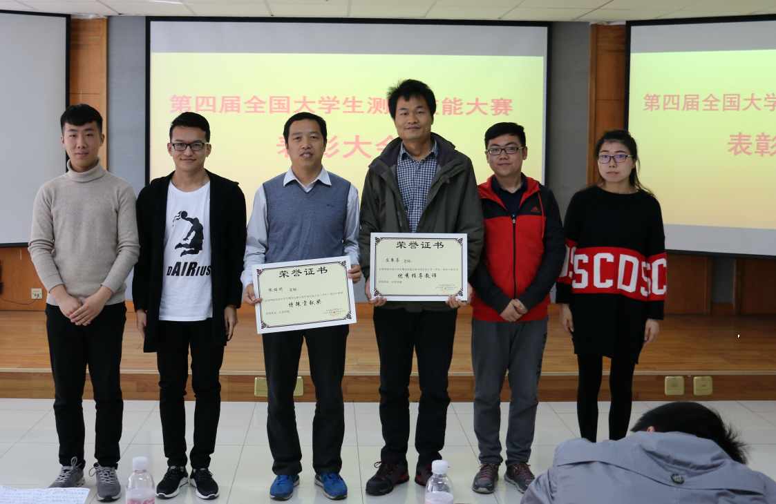 张福明老师代表指导教师团队发言,并宣读了我校赛区选拔赛的表彰决定。大赛授予刘志杰、宋佳佳、任舒波和申富豪为大赛特等奖,徐广冬等4名同学为一等奖,吴易智等6名同学为二等奖,杨波等8名同学为三等奖,并颁发奖状和奖励。会上,表彰张福明副教授为大赛特别贡献奖,陈钢花、庄春喜和葛新民为优秀指导教师。四名特等奖学生为指导教师们颁发了奖状,并与同学们分享了比赛的体会。