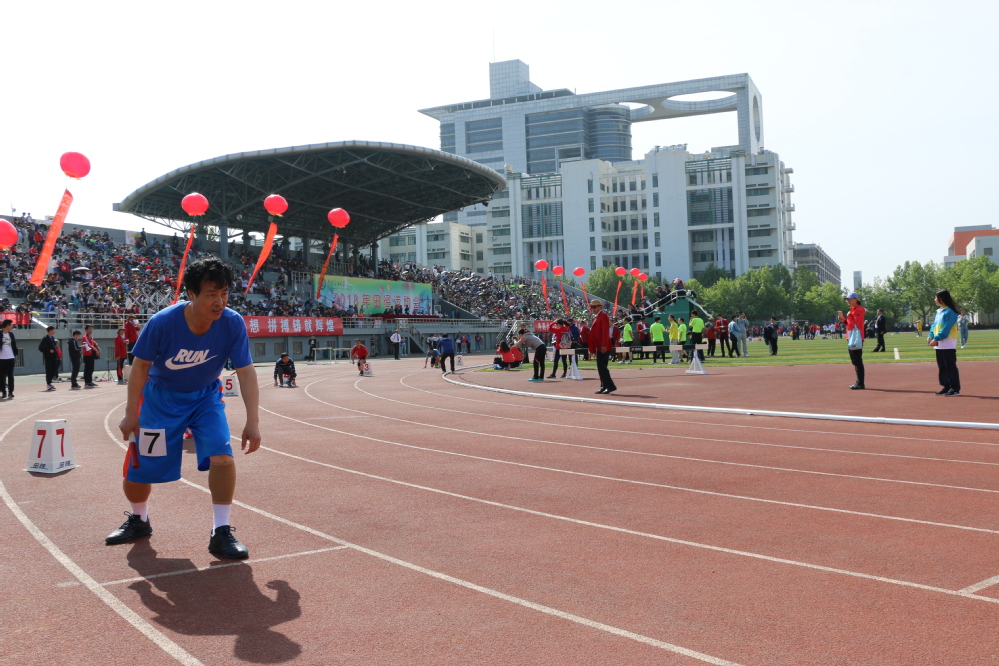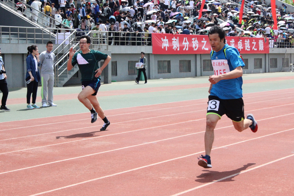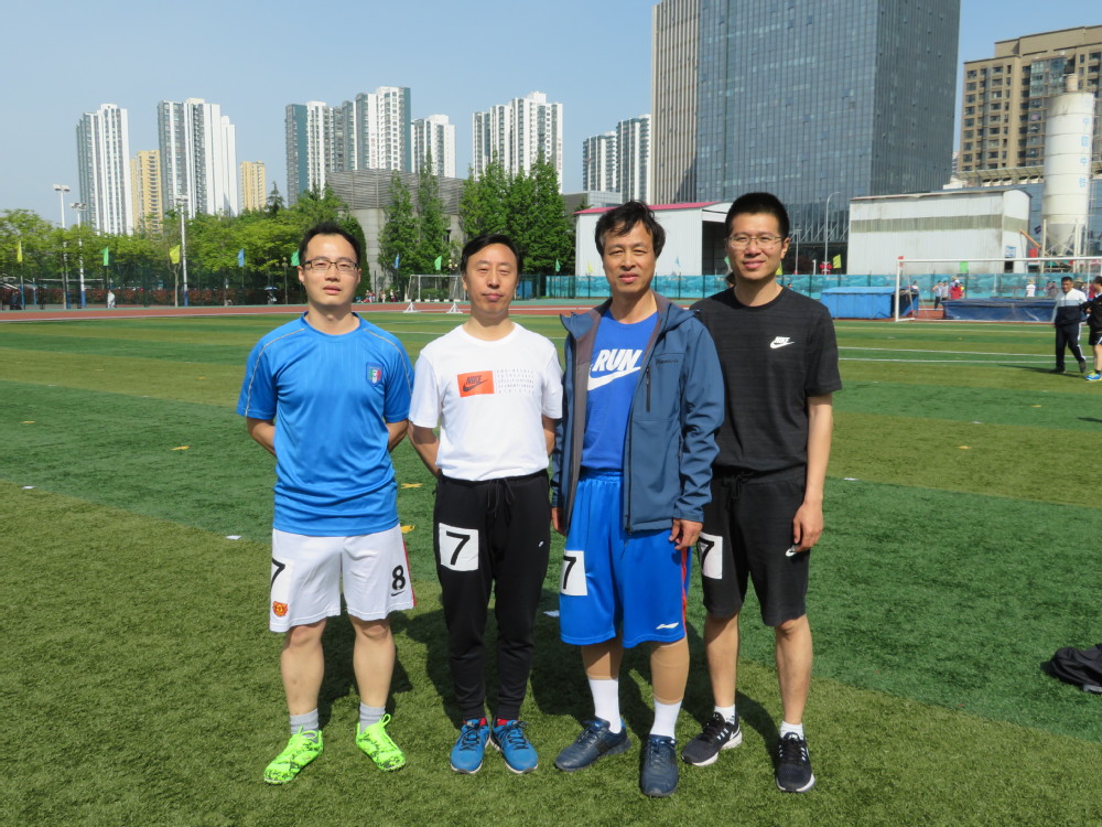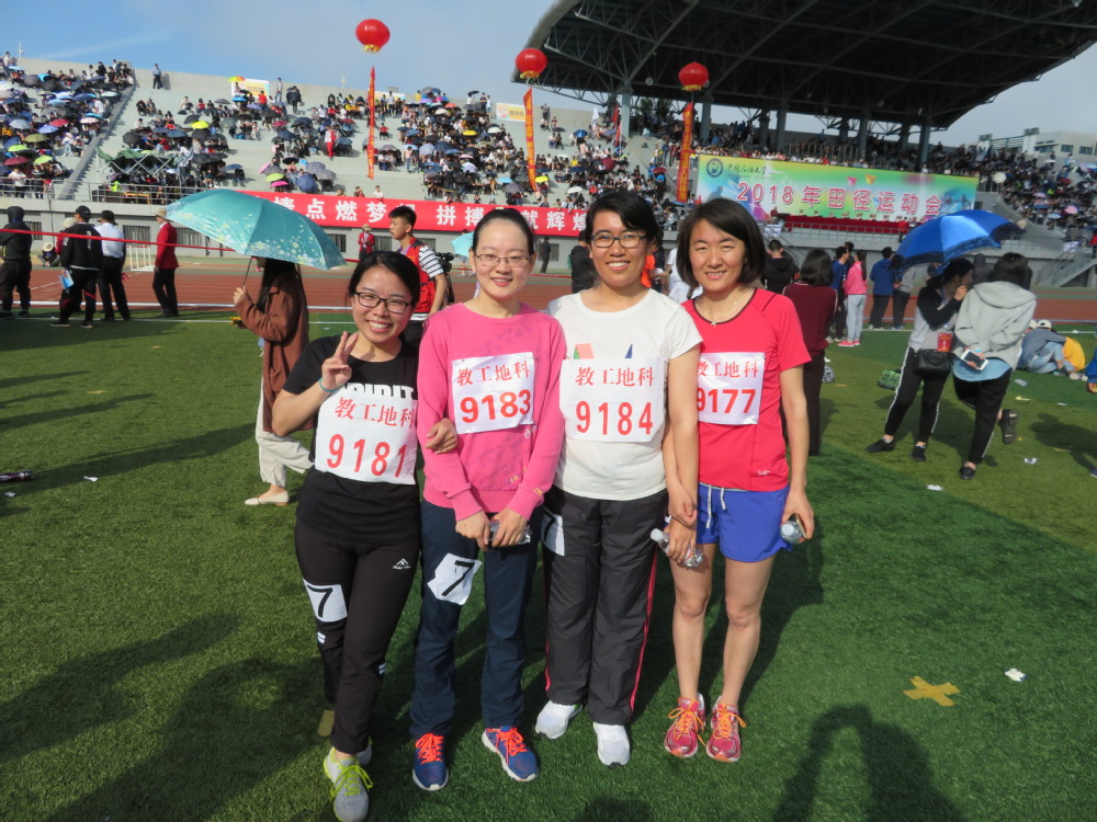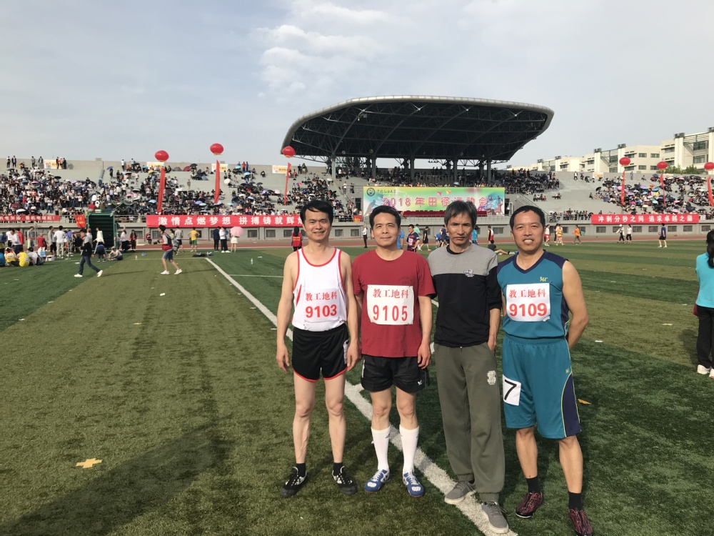 由王斌、马存飞、远二辉、玉素甫江.艾买提四位老师完成的男丙4*400米,拿下冠军,创造了奇迹,确保了团体总分第一!这是一次伟大的接力赛:远二辉超了3、4个对手,玉素甫江.艾买提曾在弯道被理学院超越,冲刺阶段又反超回来,真是好样的!