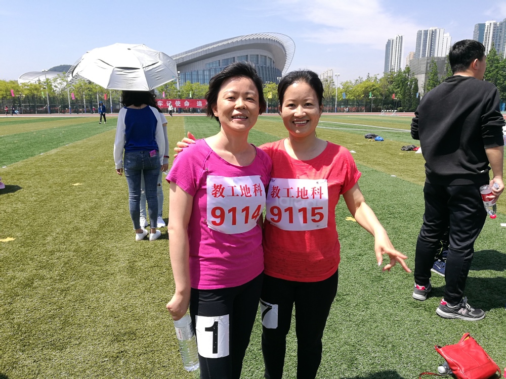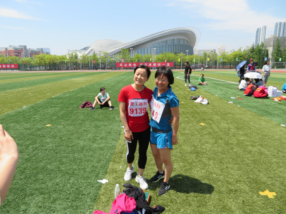 跟友队合了个影,石工李爱芬老师经常在操场跑,年龄大照样可以拿第一,也值得咱们女同胞学习!