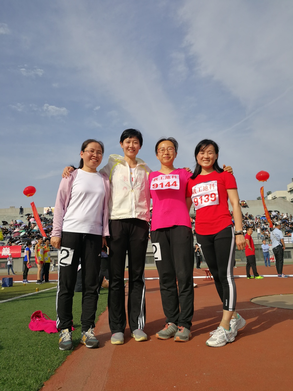 六朵金花绽放,取得骄人成绩!张敏老师作为女工委员组织女队尽力,自己还拿下100、200两个冠军,值得表扬!
