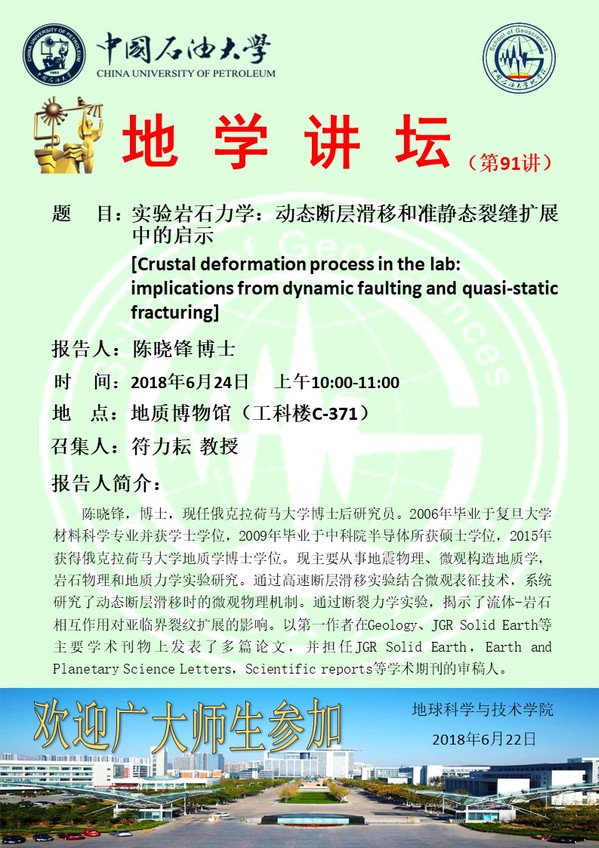 【地学讲坛第91讲】关于陈晓锋博士学术报告的通知