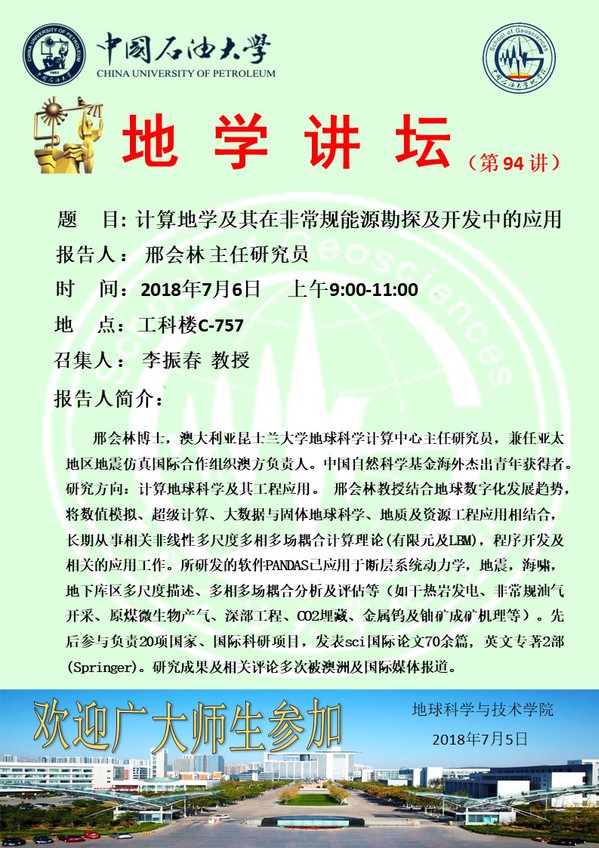 【地学讲坛第94讲】关于邢会林主任研究员学术报告的通知