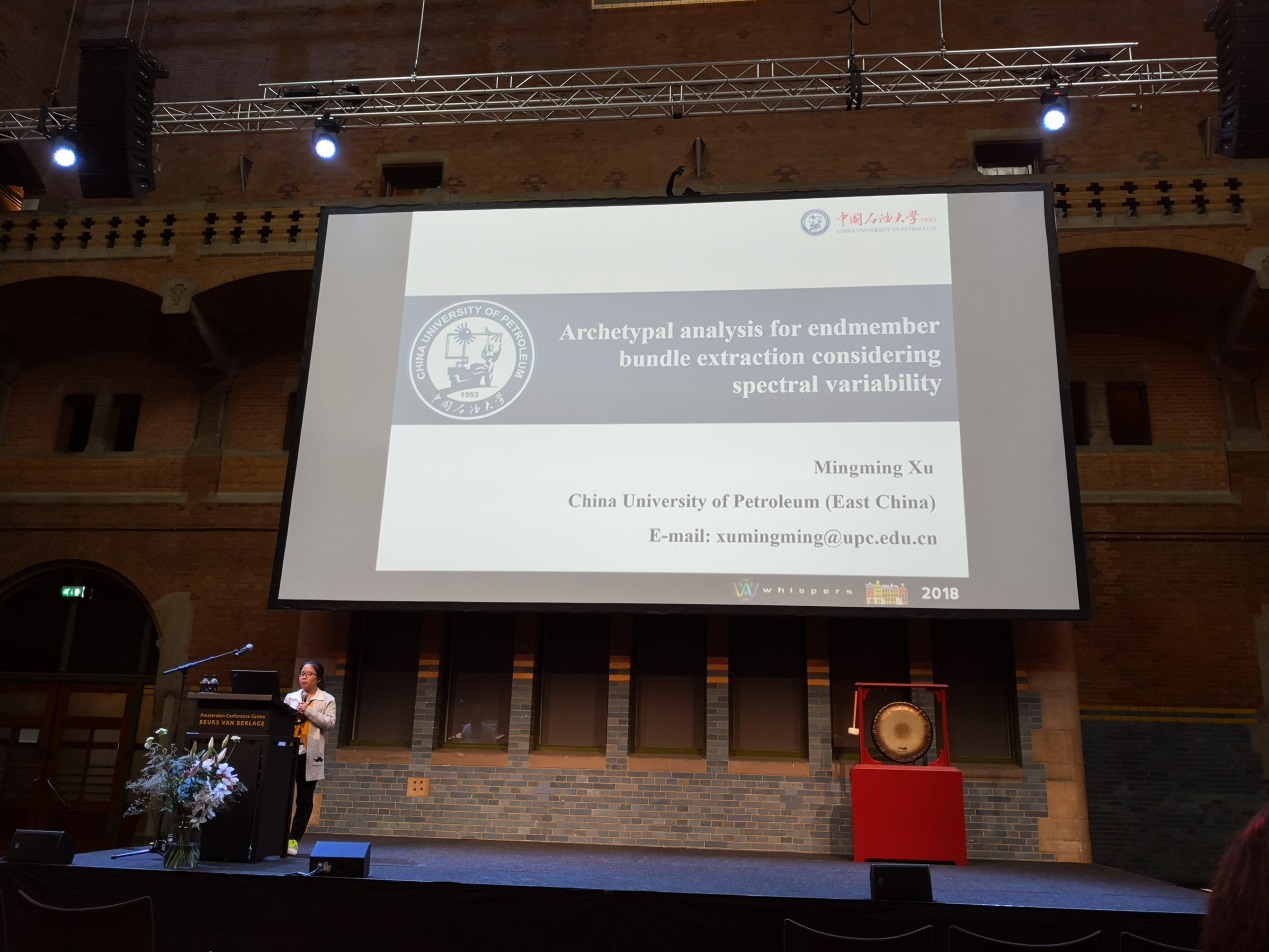在本次会议上,冰球突破mg正规官网测绘系许明明博士做了题为:“Archetypal analysis for endmember bundle extraction considering spectral variability”的口头报告,第一次提出“支撑端元”的概念,为解决混合像元分解中光谱变化问题提供了新的思路,受到与会者的广泛关注与讨论,被大会评为最具突出贡献的论文,被授予“2018 Best Paper Award”。
