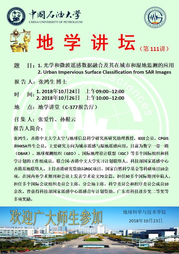 【地学讲坛第111讲】关于张鸿生博士的学术报告通知