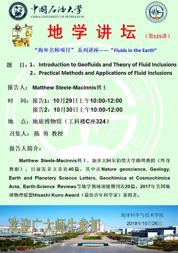 【地学讲坛第115讲】关于Matthew Steele-MacInnis博士的学术报告通知