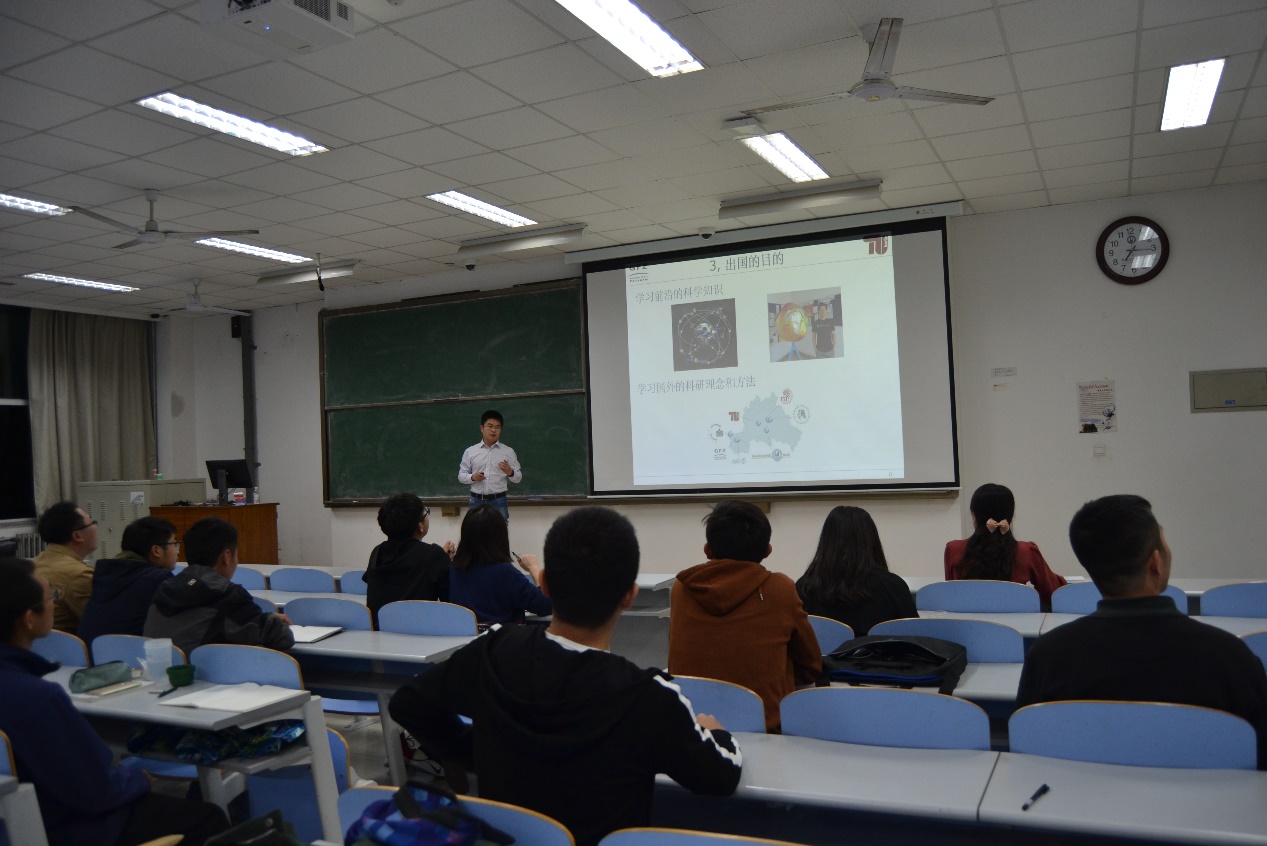 10月22日晚上召开的冰球突破mg正规官网研究生、博士生国际交流宣讲会由贺凯飞老师主讲,辅导员董晓真老师参加。贺老师从“为什么要出国学习”展开,从学科知识、经济来源、拓宽眼界几个方面为同学们介绍国内外学习生活的不同之处和国家为支持大学生、研究生和博士生出国提供的优厚条件。之后又为大家介绍了我校公派留学项目和国家奖励项目以及申请条件,并主要就即将开始申请的国家创新型人才国际合作培养项目进行了详细的讲解及动员;并鼓励大家打好语言和专业课基础,积极申请,希望同学们能把握时机,走出国门,学习学科前沿知识,努力成为国际人才,为建设双一流学科助力。