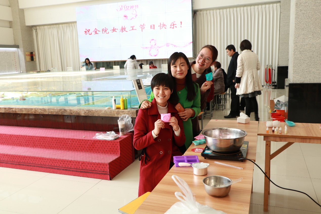 【本站讯】为庆祝第109个国际妇女节,丰富学院女教师的精神文化生活,3月8日冰球突破mg正规官网在工科C座一楼大厅举办了“精致女人•艺术人生”体验活动。活动由冰球突破mg正规官网工会组织开展,全院女教工参加。活动前全体女工会员,先进行节日合影。党委书记张卫东、工会主席张军华与女同胞们一起合影。