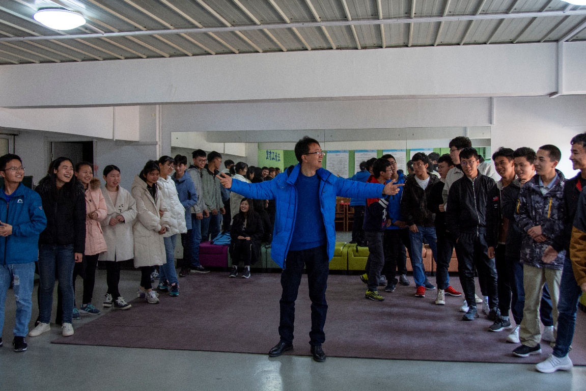 活动伊始,周晓东老师为全体学生介绍了该活动的目的以及期望结果,并通过“大风吹”活动与同学们共同热身。随后,周晓东老师用“趣味传话”游戏让同学们在欢乐的气氛中体悟到“不要轻信风言风语、谣言止于智者”的道理。接下来,“小鸡成长”游戏将气氛推向高潮,同学们在成长与退化中体悟成长的成就感,并感受在集体中得到的成长动力。最后,周老师通过活动“信任坐”引导同学们珍惜在校时间、充分利用学校资源、互帮互助,在大学四年共同进步。