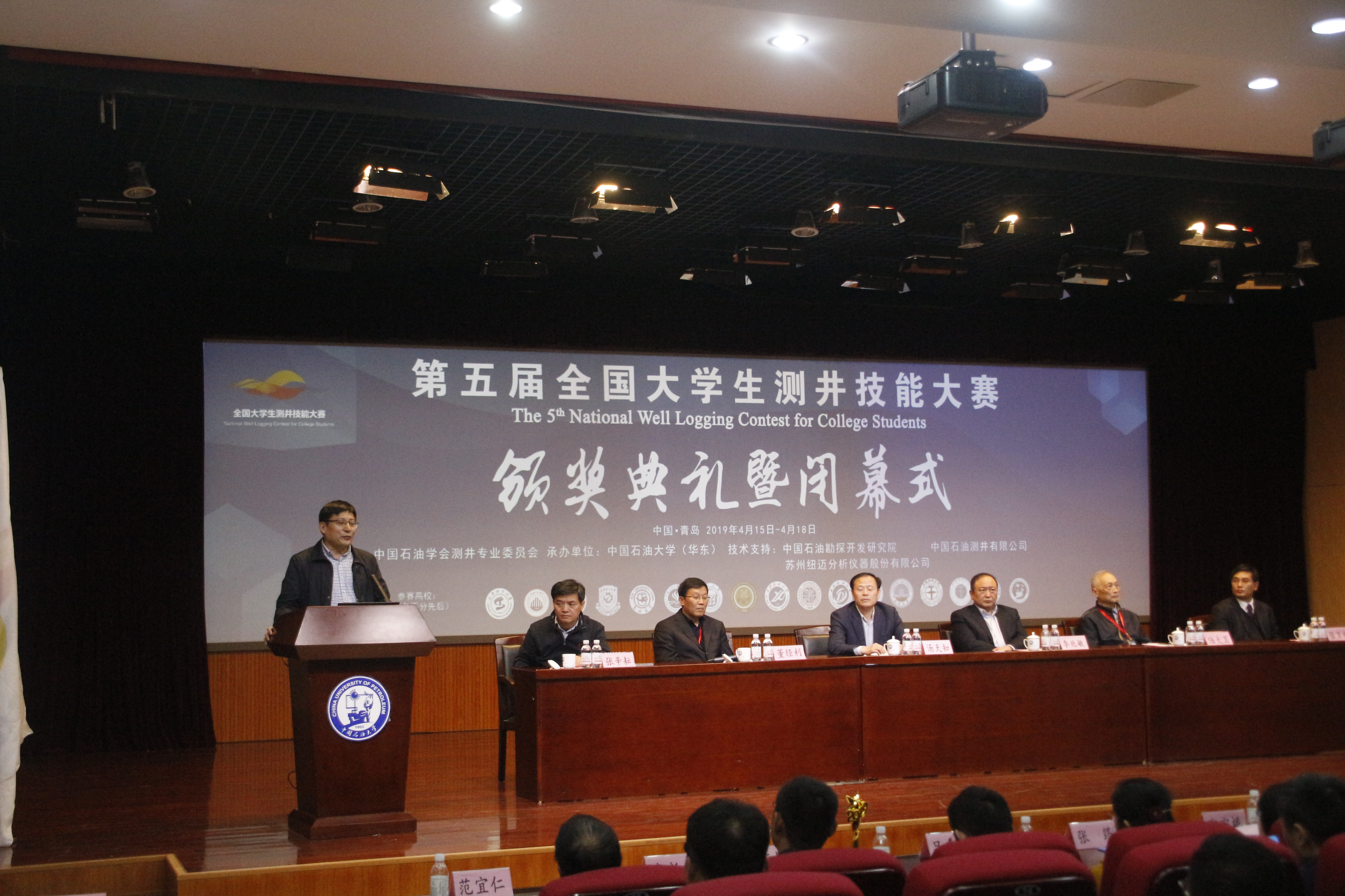 闭幕式由测井专业委员会副主任董经利主持,我校副校长李兆敏教授、中国石油测井有限公司总工程师汤天知分别代表学校和中国石油学会测井专业委员会发表讲话,对本次大赛给予了充分肯定,对大赛的圆满成功表示衷心祝贺!测井专业委员会副主任兼秘书长张辛耘、学院党委书记张卫东以及大赛裁判员(评委会专家)、全体参赛代表队老师和同学们参加了闭幕式。
