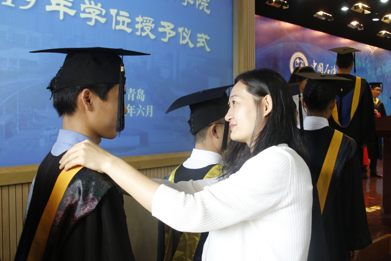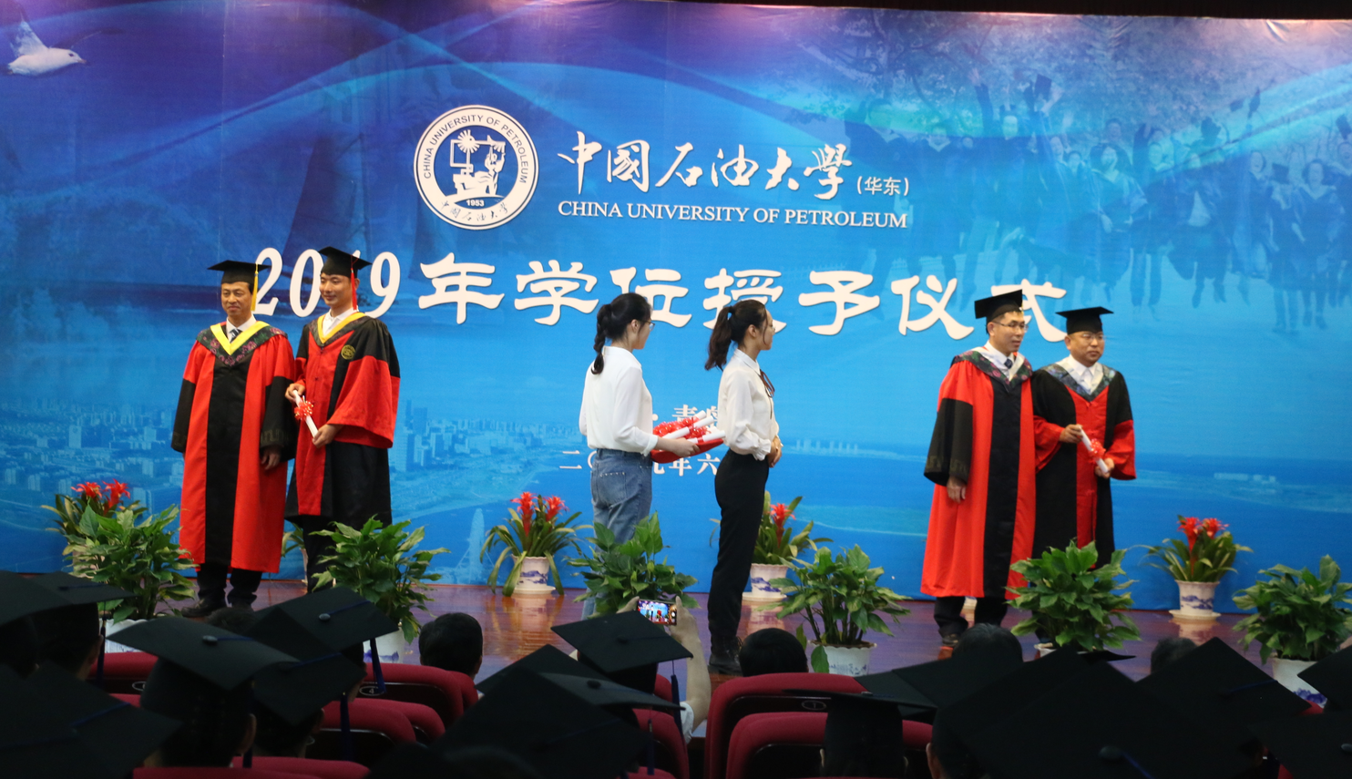 【本站讯】6月23日下午,冰球官网2019届毕业生学位授予仪式在逸夫礼堂隆重举行。仪式由学院副院长邓少贵主持。学院学位评定分委员会主席、院长林承焰教授,学位评定分委员会委员,教授委员会主席刘可禹教授共同为386名本科毕业生和287名硕士毕业生授予学位。