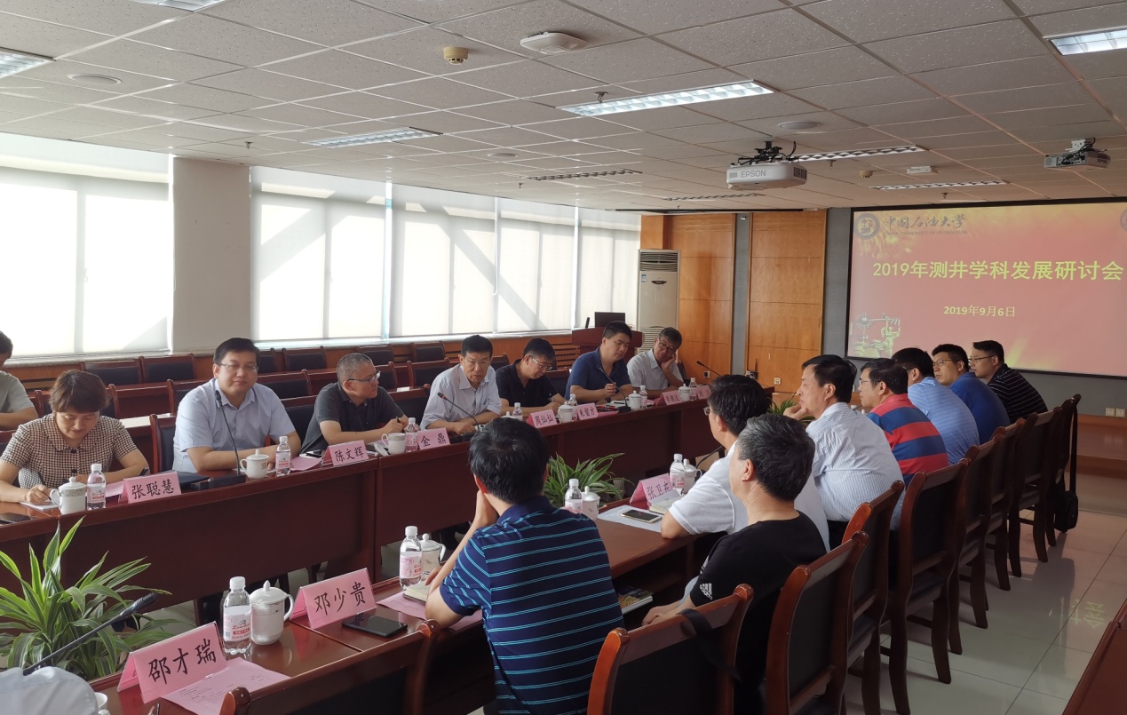 测井系主任张锋教授向与会各位专家介绍了目前测井系在师资、科研团队和特色、学科方向和平台、人才培养、实验室建设、对外交流合作等各方面的工作现状,并就人才培养与学科发展进行了分析和规划设想,分析了面临的问题、机遇和挑战,在一些重要指标上与国内外高校进行了对标分析,希望各位专家能针对问题畅所欲言,共同为测井学科建设建言献策。各位专家结合自己的工作感受以及现场对人才培养的要求,分析了我校测井系的优势、不足以及面临的各方面挑战,重点就特色科研团队建设、测井新技术发展趋势、实验室建设、青年教师和行业领军人物培养、学生培养与专业课程设置等方面,给出了很多建设性意见。测井系教师与专家展开了热烈的讨论,深入交换了意见,达成了多方面共识。专家们一致表示,企业一定会用实际行动,全力配合和支持测井学科发展,为学校双一流建设作出应用的贡献。(作者:张福明)