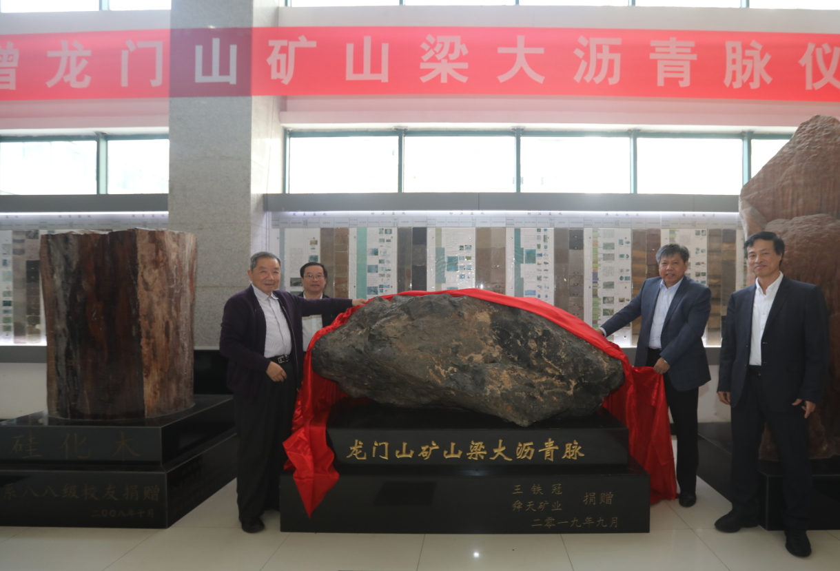 此次捐赠的龙门山矿山梁大沥青脉净重1.68吨,产于四川省青川县田坝背斜构造,是2.5亿年前中生代三叠纪晚期印支运动的产物,属于川西北龙门山矿山梁地区矿脉,该区域沥青脉厚度大、数量多、储量大,研究程度高,极具教学科研价值。(作者:陈果然 贺晓辉 朱坤)
