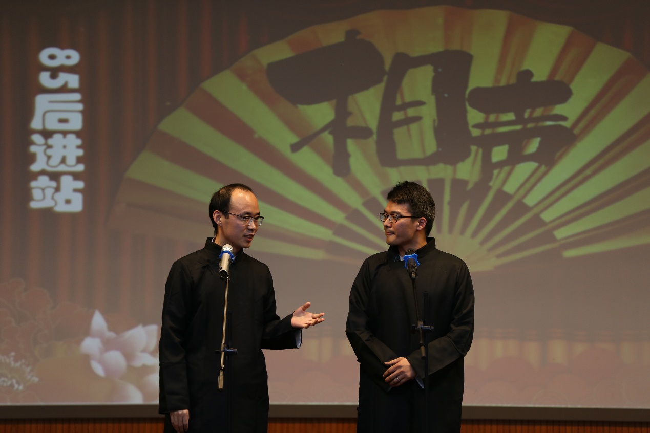 随后,新年联欢会在大学生艺术团激情洋溢的街舞表演中拉开帷幕,动感的节奏和活力四射的动作表现出当代大学生的青春魅力。地质系教师远光辉和夏鲁带来的相声《85后进站》用诙谐幽默的语言展现了青年教师青春昂扬、奋发拼搏的精神风貌。“锦绣河山美如画,祖国建设跨骏马,我当个石油工人多荣耀...”非常规油气中心教师合唱的《我为祖国献石油》,感染力十足,点燃了全场的豪迈激情。地球物理系教师表演的小人舞《欢乐舞台》将会场欢乐的气氛推向高潮,一个个“小人”诙谐的动作,再配上音乐串烧,让在场的老师们欢笑连连,纷纷举出手机记录这难忘时刻。资源系教师用独特幽默的“三句半”将2019年冰球突破mg正规官网的故事讲给每一个人听。在联欢会最后,测井系和院机关教师一起朗诵并合唱《我和我的祖国》,优美的旋律、深情的朗诵,表达了冰球突破mg正规官网广大教职工对祖国的热爱之情。
