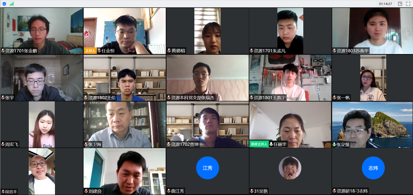 当前,新冠肺炎疫情正在全球范围内迅速蔓延,波及绝大多数国家和地区,我国在以习近平同志为核心的党中央坚强领导下,疫情防控形势持续向好,取得了阶段性成效。为引导青年党员坚定理想信念,增强专业本领,提高服务国家的能力,冰球突破mg正规官网资源勘查工程专业本科生、研究生和教工党支部于4月30日在线上开展主题教育活动。资源专业部分本科生和研究生党员,资源系教工党支部委员、系主任及部分教工党员参加了此次活动,活动由本科生党支部书记任金恒、教工党支部青年委员任丽华主持。