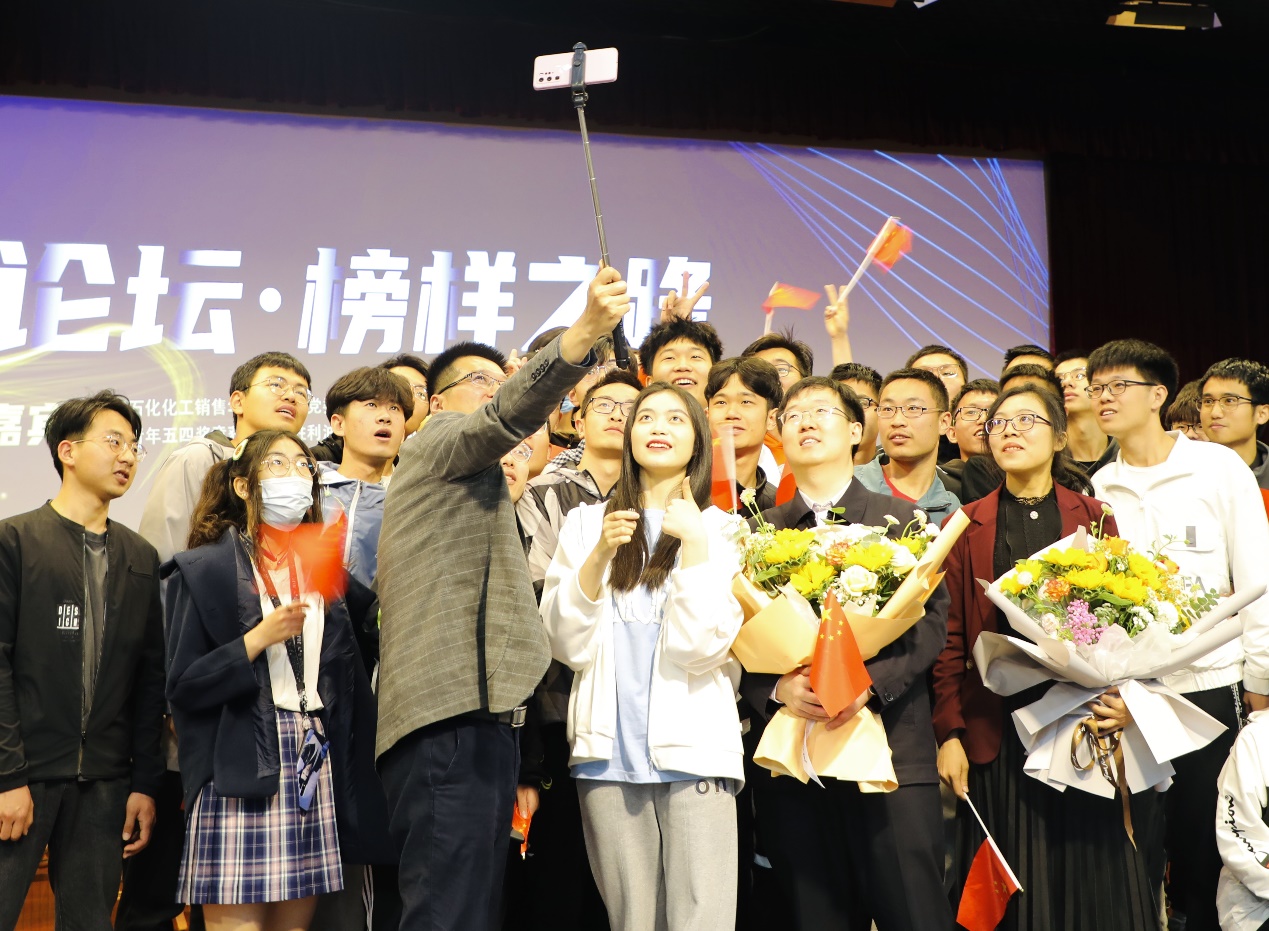 作为榜样之路首期嘉宾,中国石化化工销售华北分公司党委副书记、资源勘查工程2000级校友杨勇,中国青年五四奖章获得者、勘查技术与工程2004级校友秦宁早已是学院青年心中的榜样。“学校把杨勇师兄和秦宁师姐一起请回来啦!”学弟学妹们“追星”热情高涨,纷纷冒雨提前赶到逸夫礼堂。论坛现场既有事迹分享,又有交流互动,现场气氛热烈,掌声频传。
