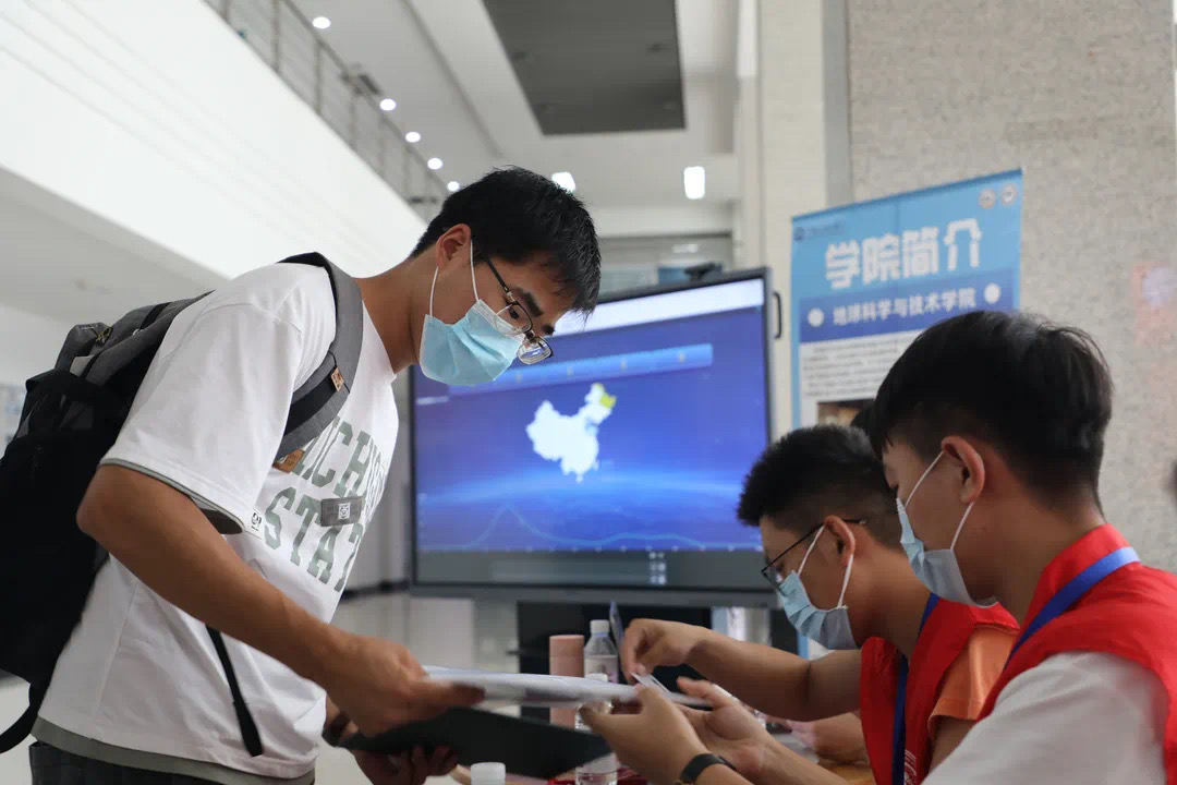 工科楼C座大厅、宿舍楼下……身穿绿马甲的志愿者为新生报到保驾护航。在这些志愿者中,既有春晖志愿服务队与研究生志愿服务队的成员参与,又有“党员先锋岗”、“新生先锋岗”的配合,他们为新生搬运行李、办理登记入住、答疑解惑。勘查技术与工程(物探)专业2102班薛迪激动地说:“初入大学,难免会感到不知所措,还好有学长学姐们的帮助,让我们快捷又便利地报到,还让我体验到了家的温暖。”学院学生会、研究生会组织志愿者为隔离期间的新生送饭上门,心理协会的同学随时补位,是迎新工作可靠的后勤。学生会王雨凡同学说到:“虽然很累,但是看到学弟学妹们开心又感激的笑脸,就会觉得这一切都值得。”