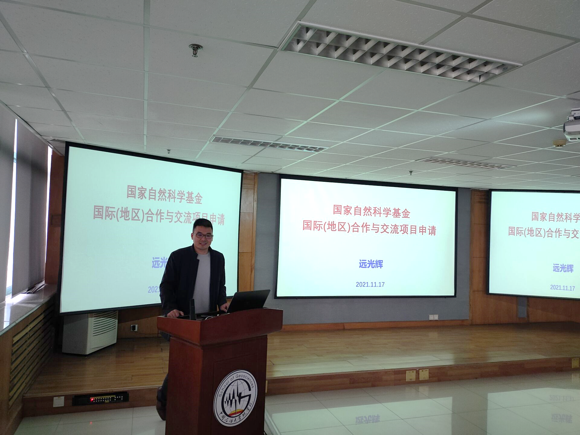 会上,任鹏教授结合自己的国际化工作经历,分享了国家自然科学基金外国青年基金项目、国际合作交流项目、国家外专局外国专家项目、欧盟地平线项目等7个国际合作项目的申报条件及个人体会,他建议大家积极挖掘个人的国外资源,建立密切的联系,主动寻求合作机会。随后,杨永飞教授详细介绍了国家基金国际(地区)合作研究与交流项目的类型及各类项目申请人需具备的资格条件,并列举了基金申请书的撰写实例,具体剖析了申请书各部分的主要内容及撰写技巧。他建议青年教师积极申报直接费用小于或等于200万元/项的组织间国际(地区)合作研究项目和国际(地区)合作交流项目,以上两个项目不受申请和承担项目总数限制。最后,远光辉教授结合个人国际(地区)合作与交流项目的申请经历,分别从前期准备、题目选取、申请书填写、注意事项等方面分享了心得体会,他建议申报前一定要选好外方合作研究人员,申请书既要强调双方前期的合作基础,又要注重体现新的合作方向和内容。