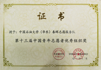 12月5日,在第36个国际志愿者日来临之际,共青团中央、中国青年志愿者协会联合发布《关于表彰第十三届中国青年志愿者优秀个人奖、组织奖、项目奖的决定》,我校春晖志愿服务队获第十三届中国青年志愿者优秀组织奖。