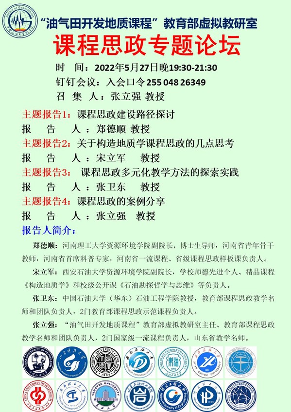 关于召开“油气田开发地质课程”教育部虚拟教研室课程思政专题论坛的通知