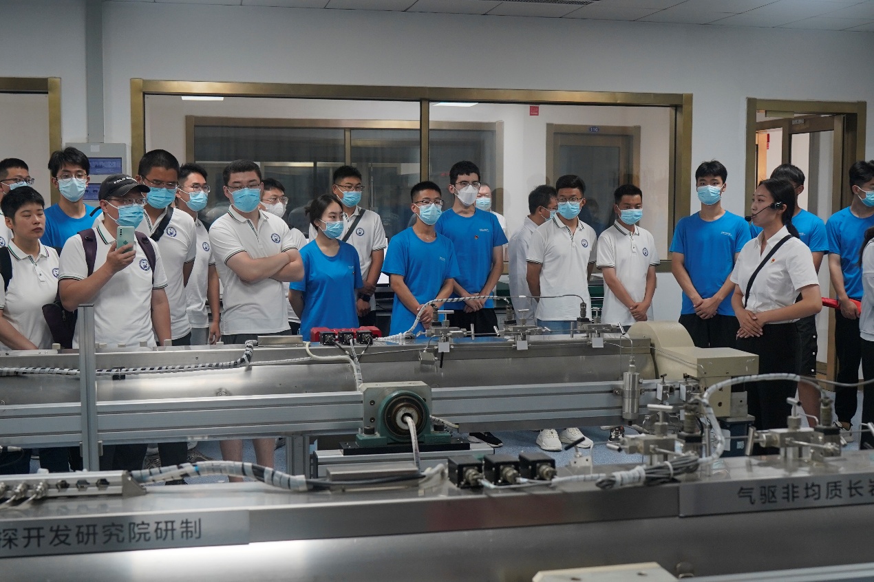 在胜利油田勘探开发研究院,博士团沿着总书记参观路线,走进页岩油重点实验室、二氧化碳气驱实验室,听取油田坚持自主创新、加快技术攻关应用等情况介绍,重温总书记“要加大勘探开发力度,夯实国内产量基础,提高自我保障能力”殷殷嘱托。在物探研究院、石油工程技术研究院,博士团先后参观总机房、稠油开采研究所、石油机械试验中心、微生物采油研究所等地,了解油田科研成果及方向。 “页岩油实验室内有着自主研发的国内首屈一指的页岩油流动模拟设备,这让我们更清晰的看到了从微裂缝中渗出的页岩纳米级、微米级孔隙中饱含的页岩油,这些突破勘探开发“卡脖子”的技术背后包含着研究人员对陆相页岩油储集空间发育模式研究工作的辛苦付出!”同样从事页岩油方向研究的地质资源与地质工程2020级博士研究生赵子茹参观完感叹道。