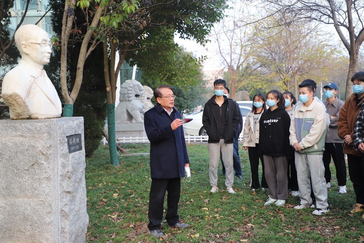 蒋有录教授向大家介绍道:“孙健初先生是第一位跨越祁连山的中国地质学家,探明并开发了玉门油矿,建成中国第一个石油工业基地,是中国石油地质的奠基人,培养了中国第一批石油地质人才。我国最早、最系统的沉积岩石学专著主要撰写人冯增昭,杰出教育学家、社会活动家、著名地质学家张一伟……,我校勘探系一大批杰出科学家为祖国石油地质行业做出了突出贡献,同学们要以他们为榜样,认真学习石油地质知识,传承好学院油气地质事业的火炬。”