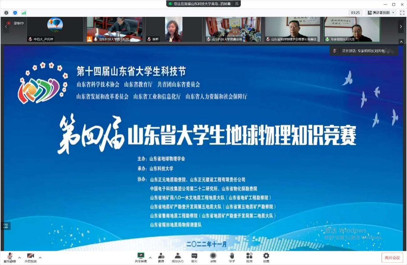 2022年11月30日,第四届山东省大学生地球物理知识竞赛成功举办,来自山东大学、中国海洋大学、冰球突破mg正规官网、山东科技大学、山东理工大学等5所省内高校的8支代表队参加,分为地震组和重磁电组。