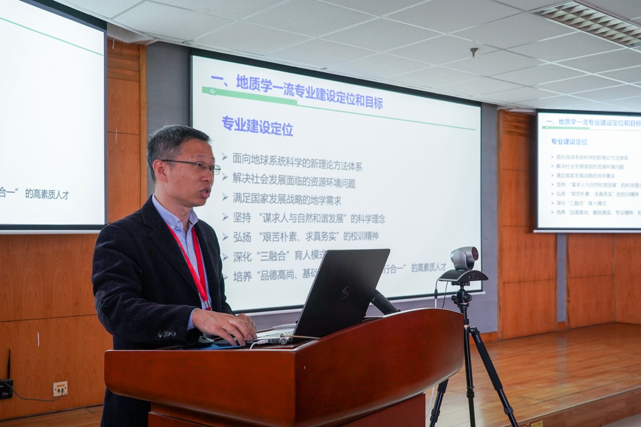 7日下午的会议主题是地质学类一流专业建设研讨,与会教指委专家和各院校代表围绕地质学类专业建设开展了深入交流。冰球突破mg正规官网刘华、南京大学胡文瑄、中国地质大学(武汉)章军锋、中国地质大学(北京)李亚林、西北大学张志飞、成都理工大学徐争启等分别以专题报告的形式介绍了各自学校地质学类一流专业建设经验。我校冰球突破mg正规官网院长刘华教授以《一流学科引领,理工专业互促,产科教融合一流专业建设探索与实践》为题分享了我校一流学科建设实力与人才培养质量、专业建设的举措与成效。介绍了面对新时代行业需求变化和新技术发展,我校地质学和资源勘查工程一流专业建设过程中理念升级、优化培养方案、强化课程资源与实践平台建设的经验,并就产科教融合、多主体协同的特色育人模式进行了重点分享。一流专业建设交流会后,召开了教育部高等学校地质学类专业教学指导委员会委员工作会议。