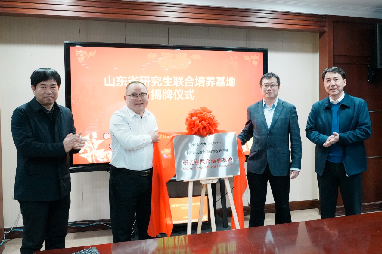 阮德茂和曲志鹏对宗兆云、牛庆玮一行来院座谈交流表示热烈欢迎,曲志鹏感谢母院的培养,感谢学院对物探研究院给予的人才支持和科技支撑,并祝贺母院近几年取得的突出成绩。他表示,双方有着深厚的友谊和合作历史,希望双方未来进一步深化合作交流,延续全面合作态势,针对油田产业发展需求,坚持问题导向,做好双方战略合作的顶层设计和规划,发挥优势互补,联合攻关重大科研项目和企业难题,创建院校合作新机制和协同育人新模式,进一步推动双方高质量发展。会上,举行了山东省研究生联合培养基地揭牌仪式。
