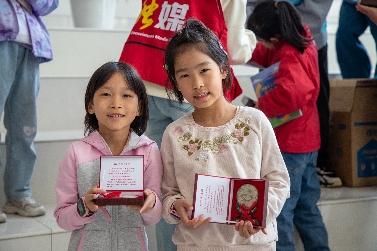 抢答环节更是将本次活动推向高潮,“小科学家”们积极参与、争相回答,现场气氛热烈而欢快,答题优秀的“小科学家”获得了由学校出版社赞助提供的郝芳校长主编的《石油能源科普丛书》。活动最后,每一位“小科学家”们都获得了学院精心准备的“三叶虫化石”摆件作为探索之旅的奖励和纪念,肯定和鼓励他们探索科学奥秘的精神。