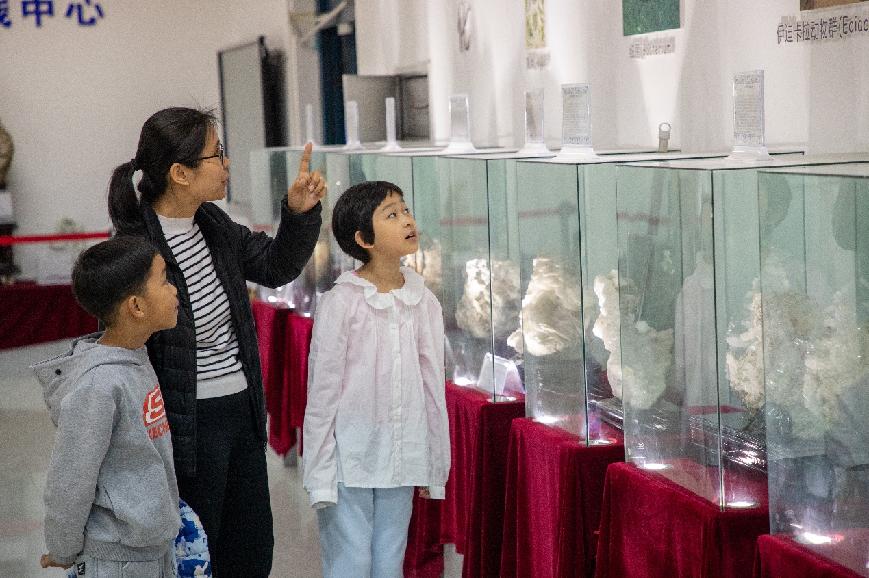 在岩心观察环节,“小科学家”们仔细观察了不同地层岩心的特征,并认真思考、积极提问,和父母一起讨论。随后在于老师指引下一起探寻了化石的印记,恐龙蛋化石、无盾龟化石等珍贵展品让他们惊叹不已。