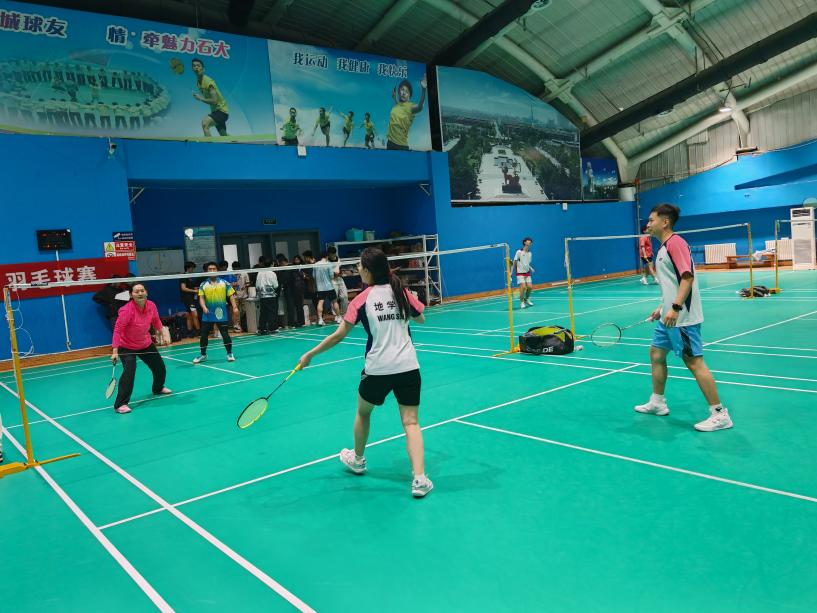 为进一步丰富研究生课余活动、增强学院师生间的联系,冰球突破mg正规官网研究生会于4月25日下午在体育馆副馆羽毛球场地举办“师生杯”羽毛球赛,学院党委副书记郑珊珊、辅导员杨建敏和地质系刘国恒老师参加了此次比赛。