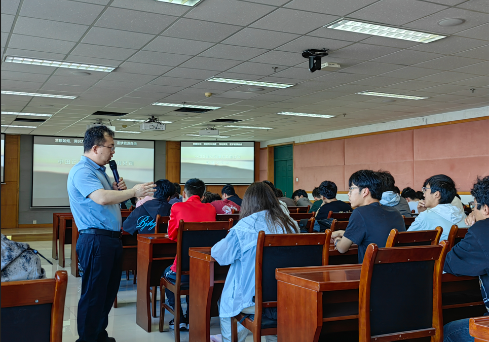 戚壮作“慧眼识藏 深地逐梦”报告,讲述了中油测井公司发展、测井学科及技术历程、能源行业人才培养与人才需求。他讲到,中油测井公司历经20余年的发展,锻造了以CPLog、CPPerf等为核心的服务技术体系和CIFLog-LEAD工业软件为核心解释评价应用技术系列,在测井射孔技术研发、装备制造、技术服务和资料应用等领域,已成为具有国际影响力的专业化测井服务公司。关于人才成长,中油测井全力打造测井“八大人才专项工程”,着力锻造“三强”干部队伍。他勉励青年学子要以开放、务实的心态,提高自身学习水平,迎接人工智能等新技术的到来,并欢迎石大学子选择中国石油,为中国石油的明天努力奋斗!
