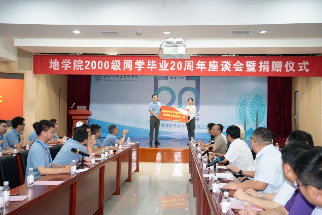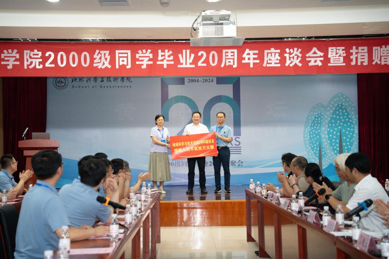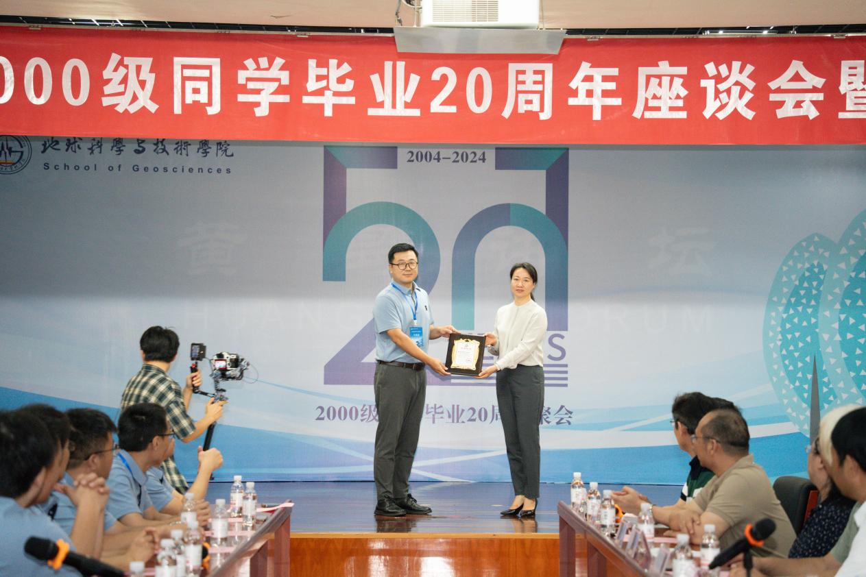 座谈会上,冰球突破mg正规官网2000级校友向学校捐赠了二十万元奖学金和一台实木地球仪。校友代表为昔日恩师献花,表达对老师在校期间谆谆教导的感激之情。