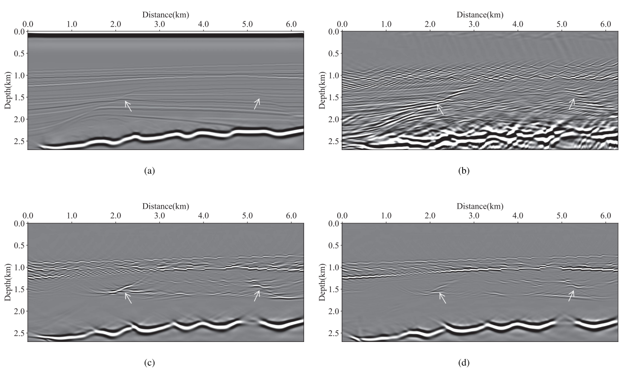 地震绕射波成像能够准确地反映出断层、岩层尖灭等地下不连续介质体的构造形态,为石油与天然气勘探提供重要的成像依据。然而,在地表接收的全波场数据中,绕射波常常与反射波混叠,且其能量较反射波更弱。如果直接使用全波场数据成像,这些地下不连续介质会被连续的反射界面掩盖,因此需要分离出绕射波,以单独成像。