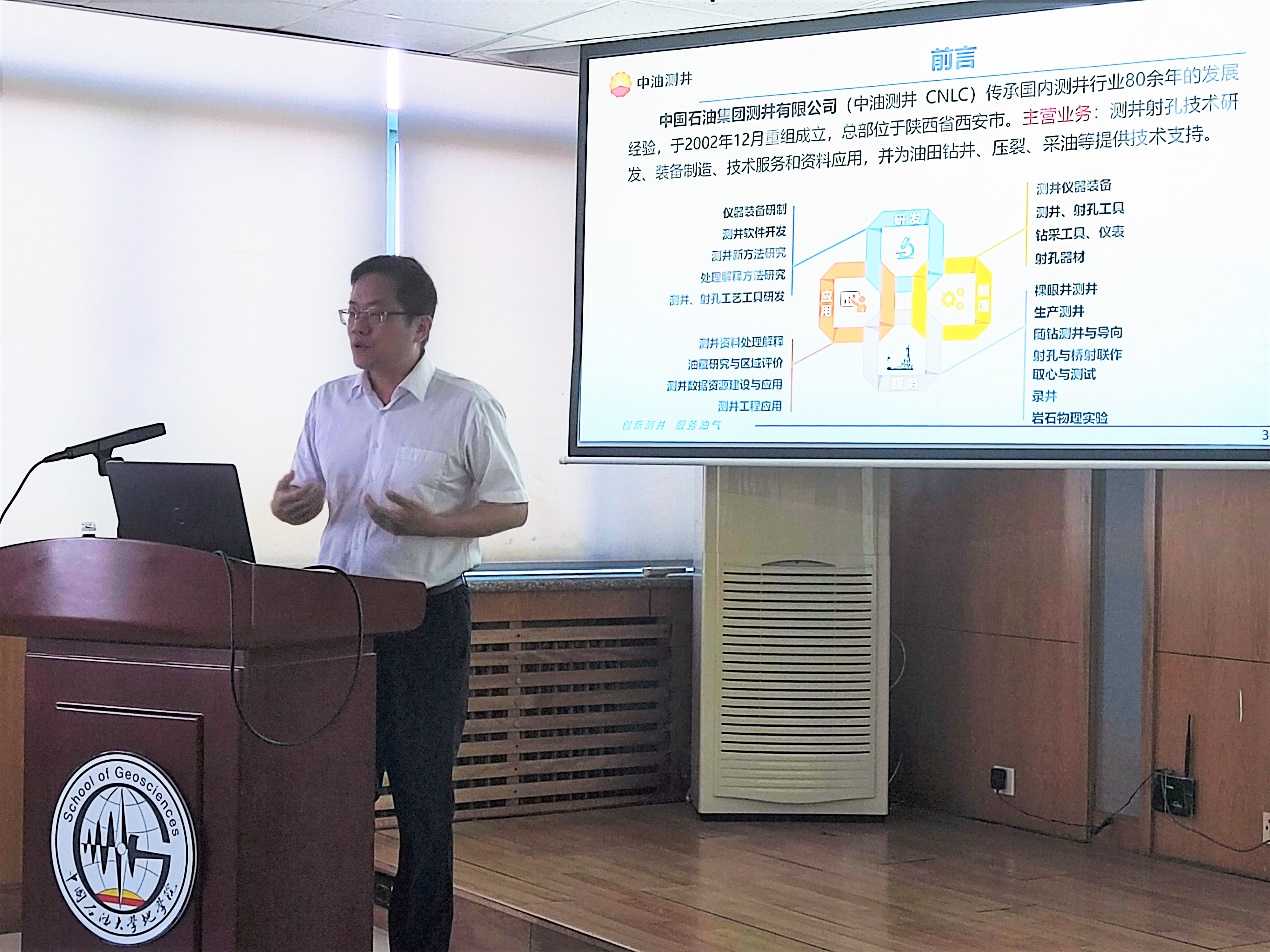 9月7日,中国石油集团测井有限公司首席专家周军受邀做客地学讲坛283讲,为学院师生作题为“测井智能化现状及展望”的学术报告,冰球突破mg正规官网副院长苏远大主持报告。