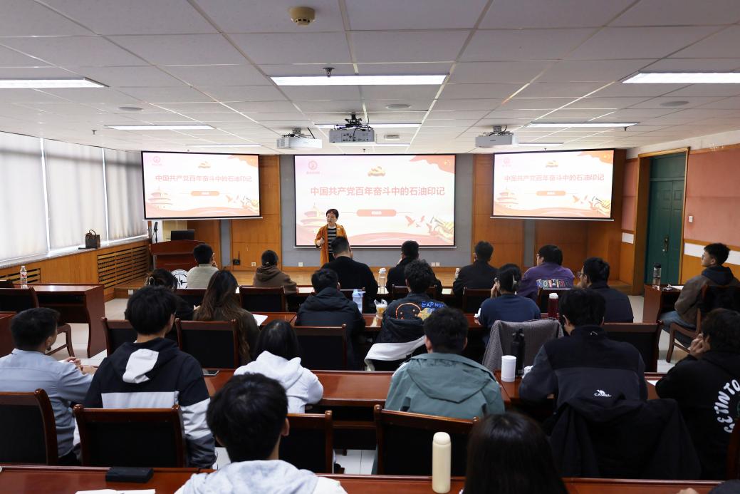 解晓燕讲授题为“中国共产党百年奋斗中的石油印记”的主题党课 王圣钧摄