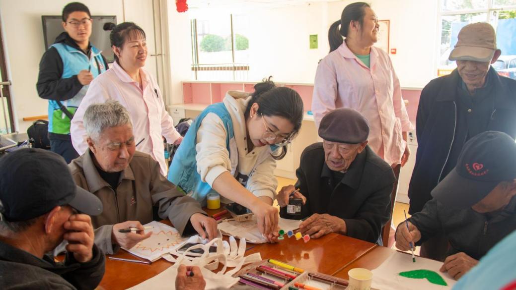春晖队员在老党员之家开展地球环保主题帆布包绘画活动