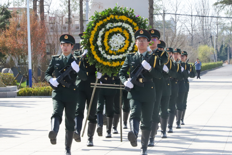 国旗护卫队员向革命英雄纪念碑敬献花圈