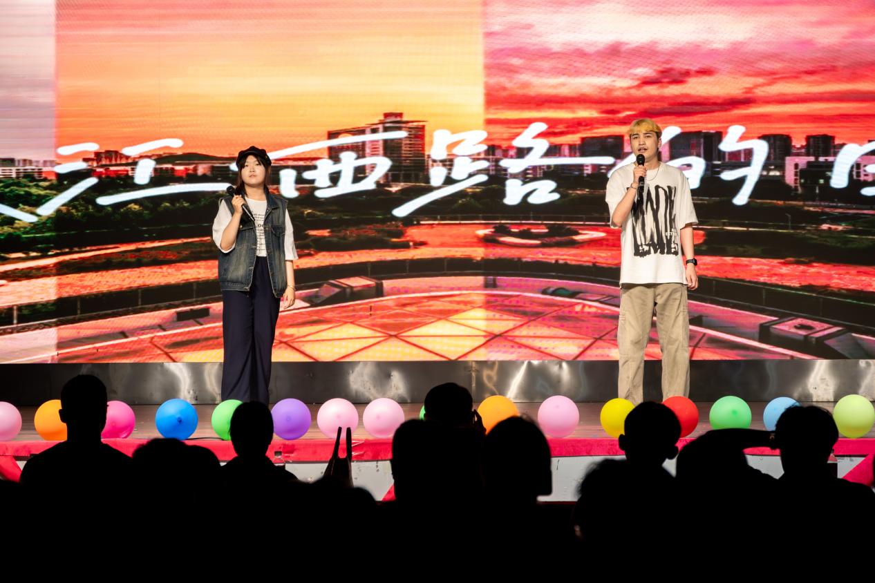 灯光闪烁,晚会在《祂和TA的演出》歌曲串烧中拉开序幕,当“Fighting再一决!”的歌声响起时,在场所有同学的热情瞬间被点燃;在热烈的掌声中,郭雨晴与钟越合奏弹唱的《天下》带领大家体会了身处江湖的豪情壮志,祝愿毕业生们在接下来的人生中一往无前;Potato Boys组合带来的歌曲《玫瑰少年》渲染了全场氛围,用轻巧的语气赢得热烈掌声;李世霖与万灵带来的歌曲《星空叙爱曲》则是让人眼前一亮,将观众带入一段温柔的旋律之中。