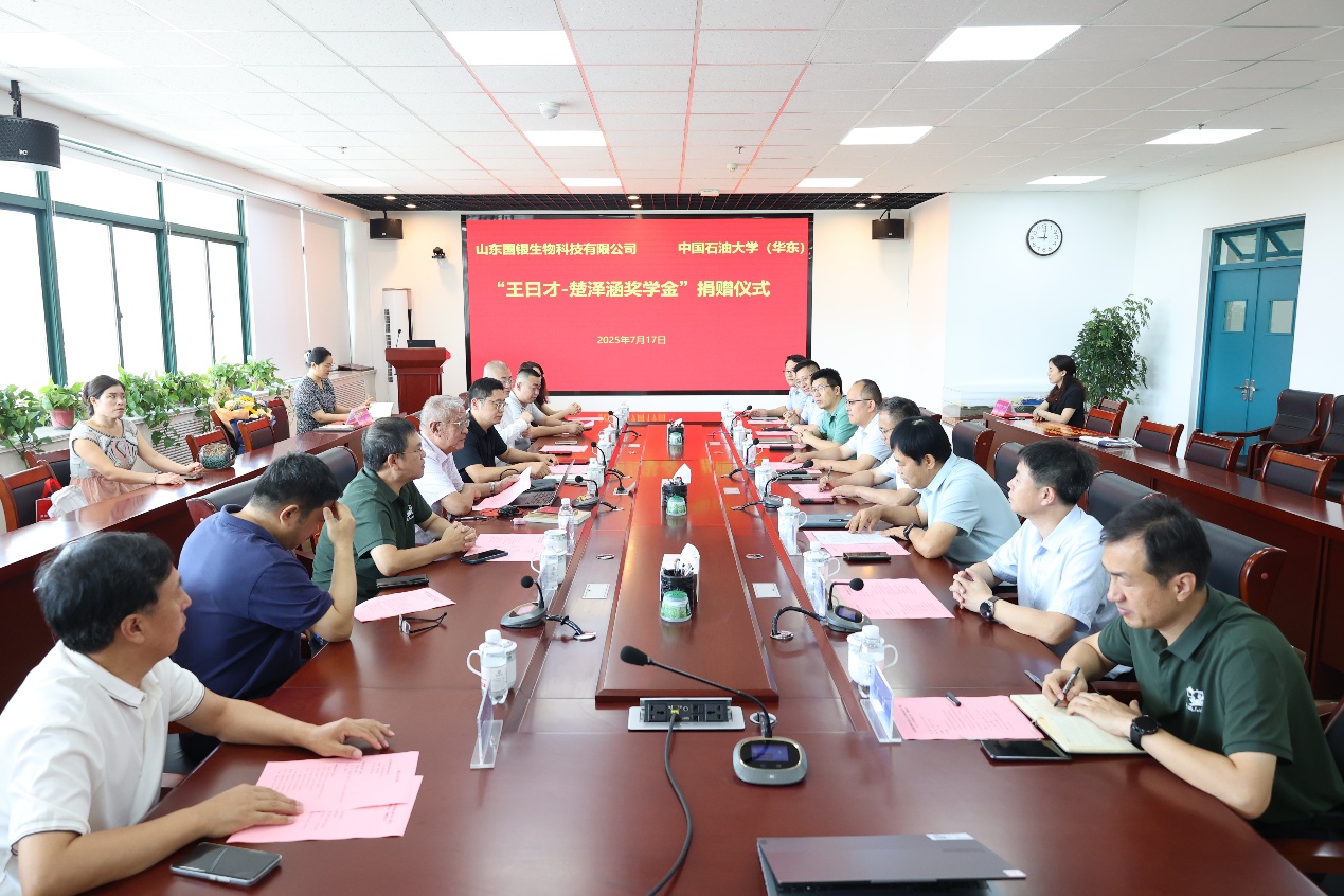 7月17日上午,山东国银生物科技有限公司与冰球突破mg正规官网“王曰才-楚泽涵奖学金”捐赠仪式在工科楼C271会议室隆重举行。