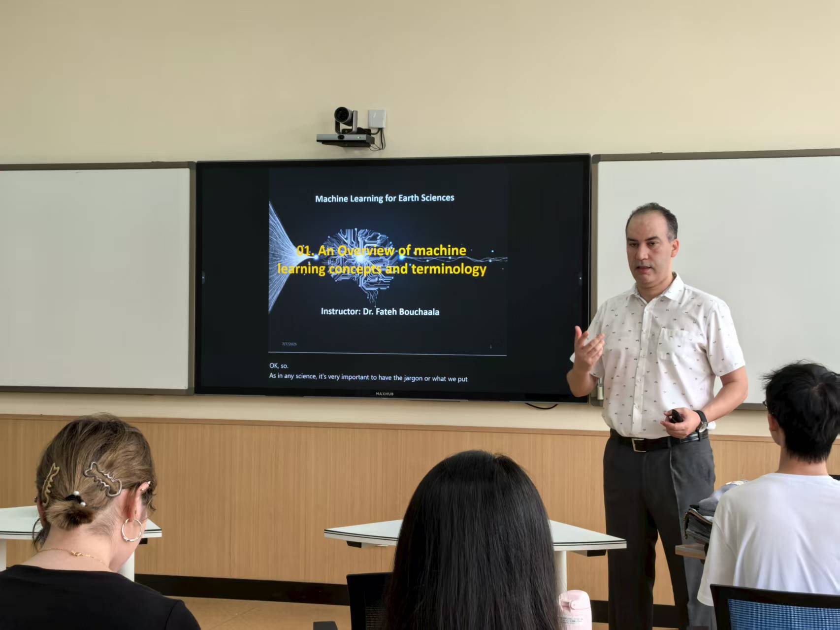 7月7日-7月10日,根据研究生院第六届研究生国际教育周的安排,阿联酋哈利法科技大学Fateh Buchaala副教授应邀为冰球官网研究生开设国际周课程《地球科学中的机器学习》并顺利完成授课。
