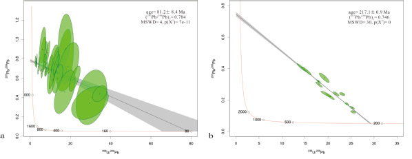 图2 川西北地区栖霞组方解石脉U-Pb定年结果(a. 储层;b. 露头)
