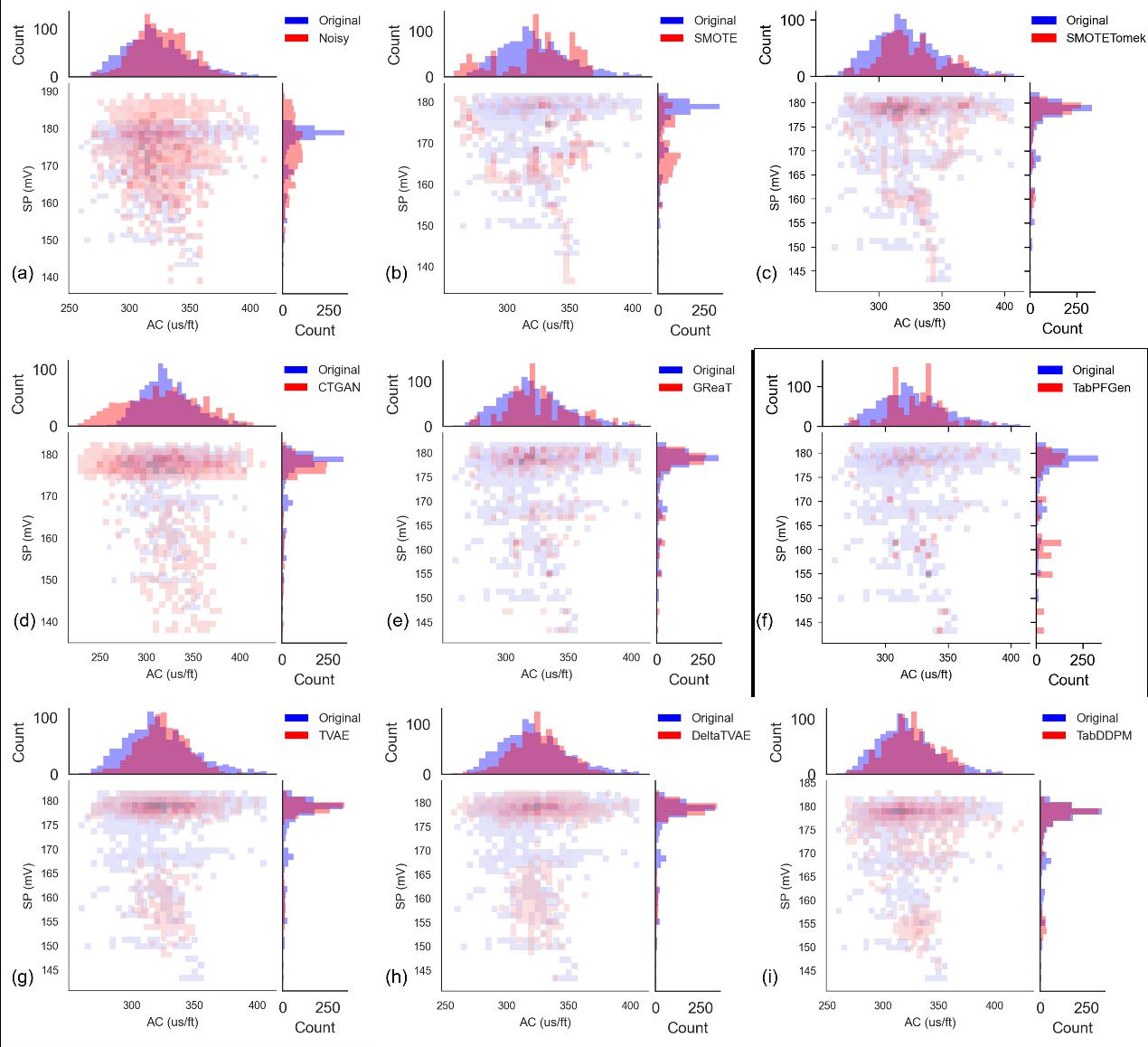 增强后数据集的可靠性是研究人员关心的问题,该工作的创新之处在于提出的工作流对多种前沿岩心数据增强技术进行了不同规模合成数据的可靠性分析(图2,3)。其次,该工作流将数据增强算法分别与机器学习、预训练语言模型集成在一起,通过开发和应用增强预测模型的多种组合,来实现实例井中的岩性分类和物性参数预测。