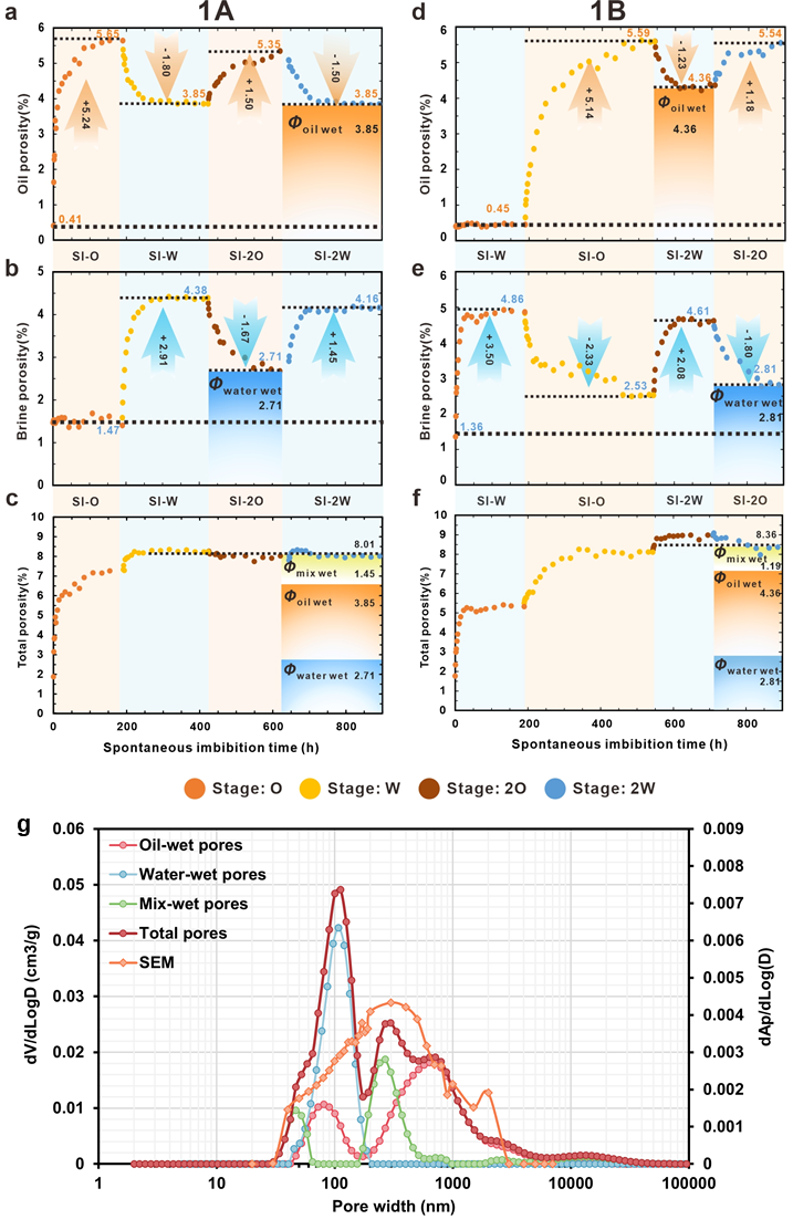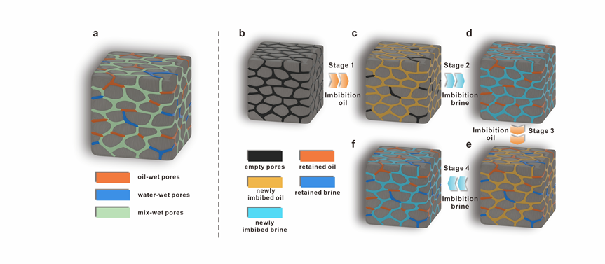 图1.页岩孔隙的润湿性模型及交替自发渗吸模式