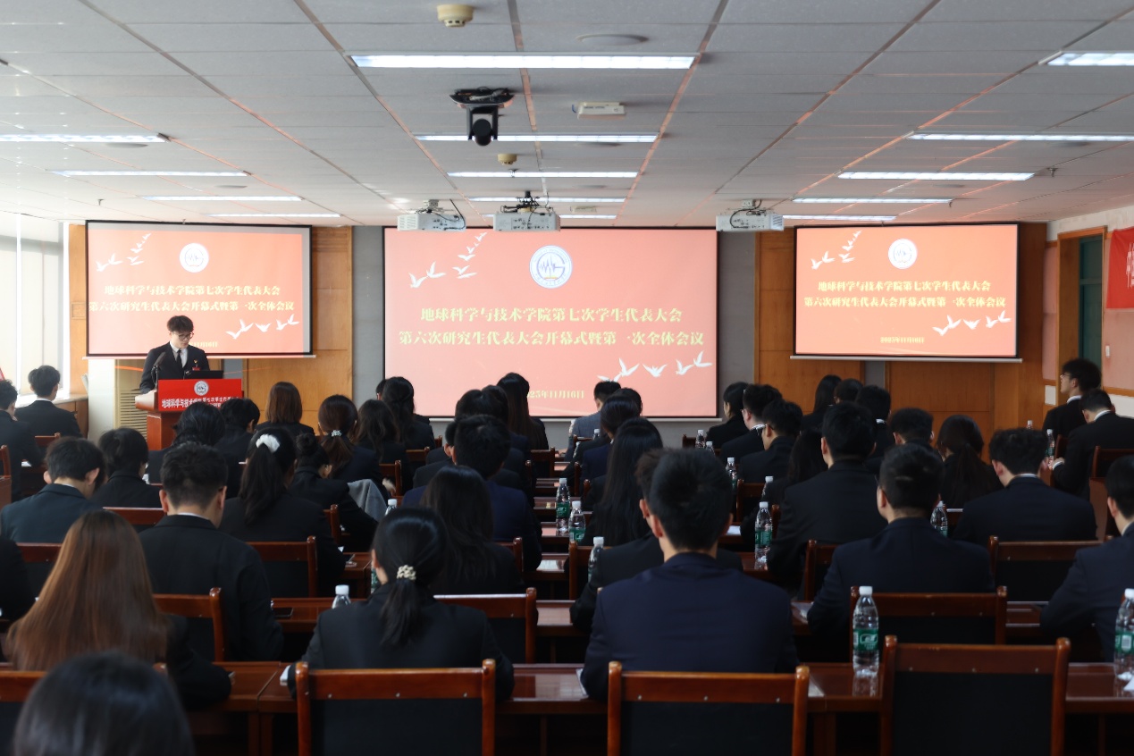 学院党委副书记穆洋洋代表学院党委对学代会和研代会的召开表示祝贺,充分肯定了同学们在学识、能力与品格上的成长,并向学生会、研究生会的全体学生干部和广大青年学生提出三点希望:一是恪守服务宗旨,锤炼过硬作风;二是广发青年之音,传递同学诉求;三是勇担地学使命,服务学院发展。他强调,青年学子应传承勘探精神,砥砺报国之志,为强国建设、民族复兴贡献地院学子的智慧和力量。