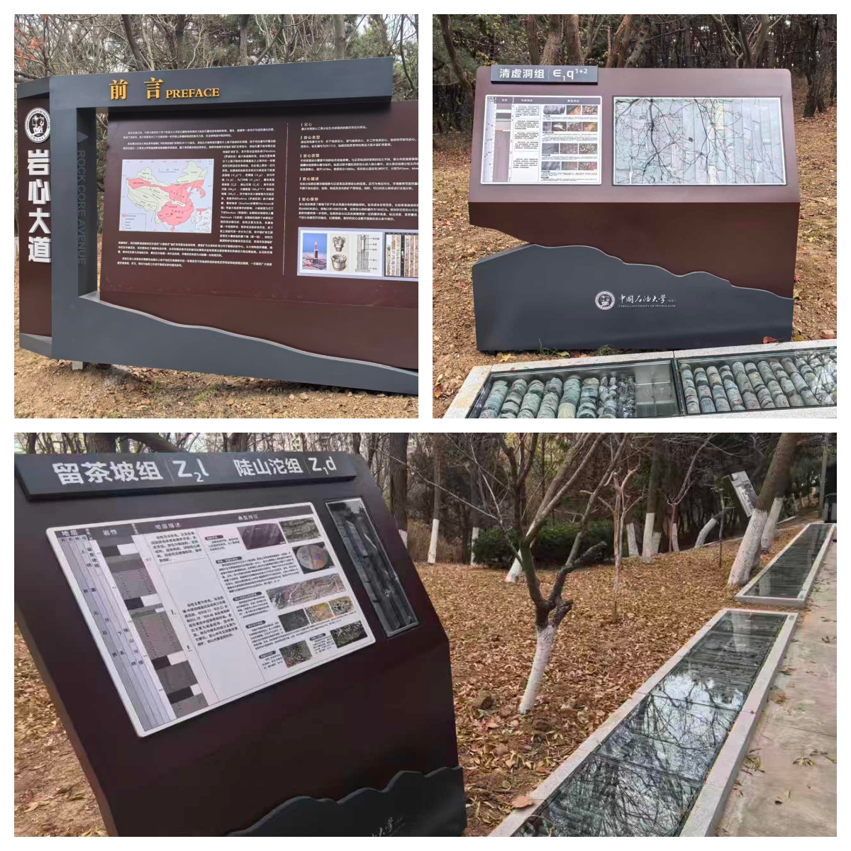 岩心大道作为二期建设的核心景观与科教走廊,依托小黄山原有道路改造提升,集中展示了冰球官网94级校友朱光有教授捐赠的下古生界寒武系至上元古界南华系连续1400米长的钻井岩心样本。通过在主干道一侧建成岩心实物展示区,真实还原岩心各个深度的真实样貌,全面展示我国南方上扬子地区上元古界——下古生界地层的演变;通过建设文化展示墙,对典型层段岩心特征进行详解介绍,使师生在漫步中直观感受地下岩层的实际特点及其演变历史。大道不仅成为校园一道独特的风景线,更化身“行走的地质课堂”,助力学校地学人才培养与学科文化传播。