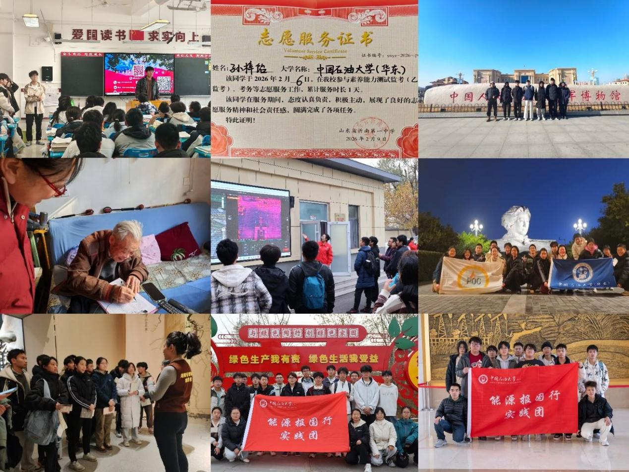 为深入学习贯彻习近平新时代中国特色社会主义思想,引导广大青年学子深刻把握国家“十五五”规划发展蓝图核心要义,在实践中受教育、长才干、作贡献,2026年寒假期间,学院以“挺膺担当践初心,青春逐梦躬于行”为主题,组织指导355支实践队赴全国各地开展寒假社会实践活动。实践活动期间,同学们积极行动,深耕能源领域彰显专业担当,情系社区邻里传递青春温度,在理论宣讲中筑牢信仰之基,在招生宣传中续写薪火相传……他们用脚步丈量祖国大地,用行动书写青春答卷,生动彰显了新时代青年挺膺担当、逐梦前行的精神风采。