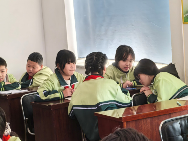 内蒙古科左后旗甘旗卡镇中心学校学生讨论问题 甘旗卡老师摄